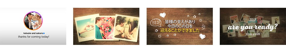 写真はテンポよくフリックモーションで動きます!二人の普段のプライベートな写真を使うのが素敵です。